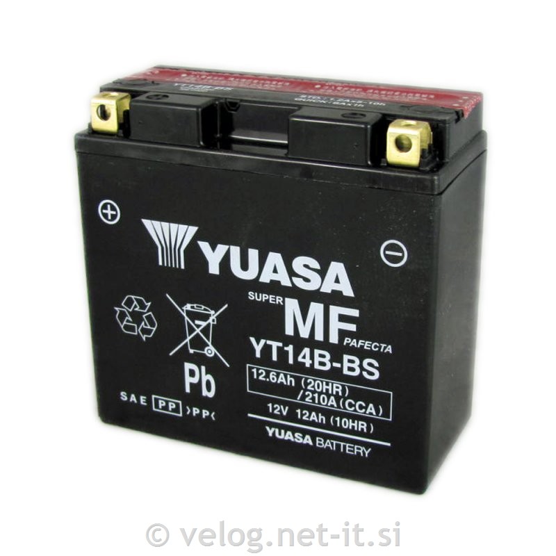 Moto akumulator YUASA YT14B-BS z visokim zagonskim tokom. Akumulator za motor YUASA je pojem kvalitete in so v prvi vgradnji številnih proizvajalcev motorjev.