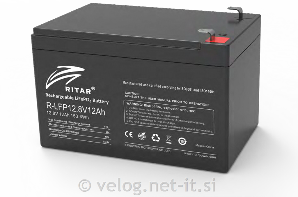 LiFePO4 baterija 12.8V 12Ah Ritar – zanesljiva in dolgotrajna rešitev