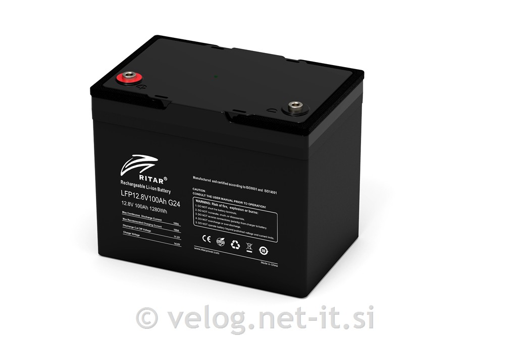 - Kapaciteta: 100Ah (1.280Wh), napetost: 12.8V