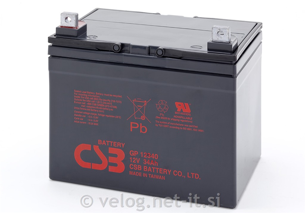 UPS akumulator 34Ah 12V firme CSB Energy Technology (EMEA) B.V. je namenjen za sisteme neprekinjenega napajanja. Firma CSB Energy Technology (EMEA) B.V. je pomemben dobavitelj UPS baterij za prvo vgradnjo tudi za APC, ki je v sklopu Schneider Electric, kar potrjuje kvaliteto in zanesljivost. UPS baterija GP12340 ima pričakovano življenjsko dobo do 5 let.