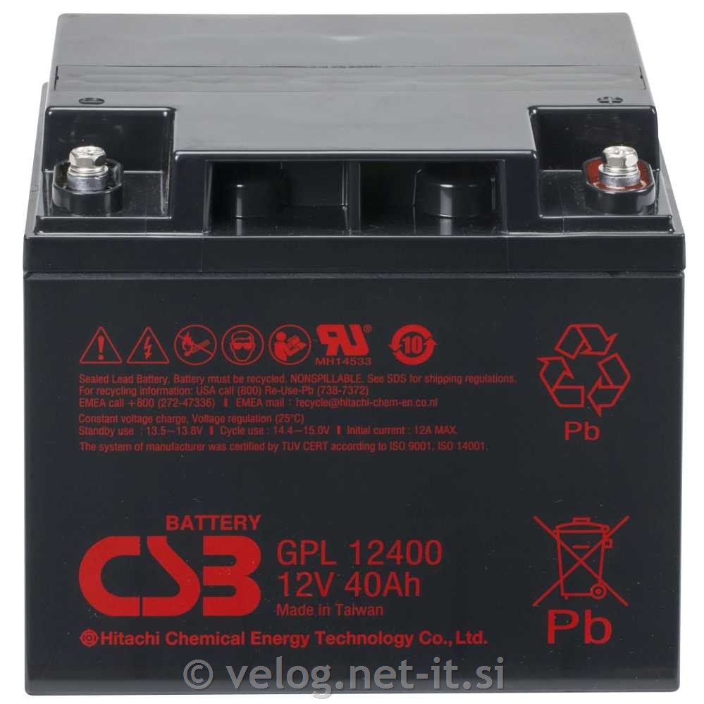 Baterija CSB Energy GPL 40Ah 12V firme CSB Energy Technology (EMEA) B.V. je namenjen za sisteme neprekinjenega napajanja (UPS), kjer se od akumulatorja pričakuje daljša življenjska doba.