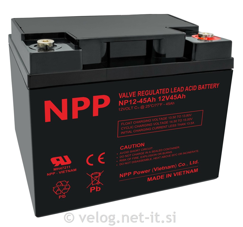 Akumulator UPS AGM 12V 45Ah NPPje namenjen zanesljivemu napajanju električnih porabnikov.