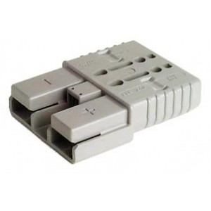 Konektor Anderson SBE 160 siv 33,6mm2 s ploščatimi kontakti zagotavlja hitro in enostavno povezavo med baterijo in vozilom oziroma polnilcem.