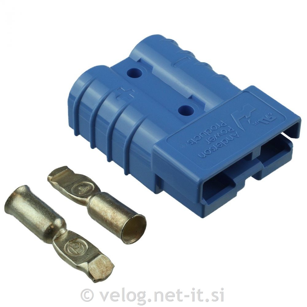 Konektor Anderson SB 50 moder 5,6mm2 s ploščatimi kontakti zagotavlja hitro in enostavno povezavo med baterijo in vozilom oziroma polnilcem.