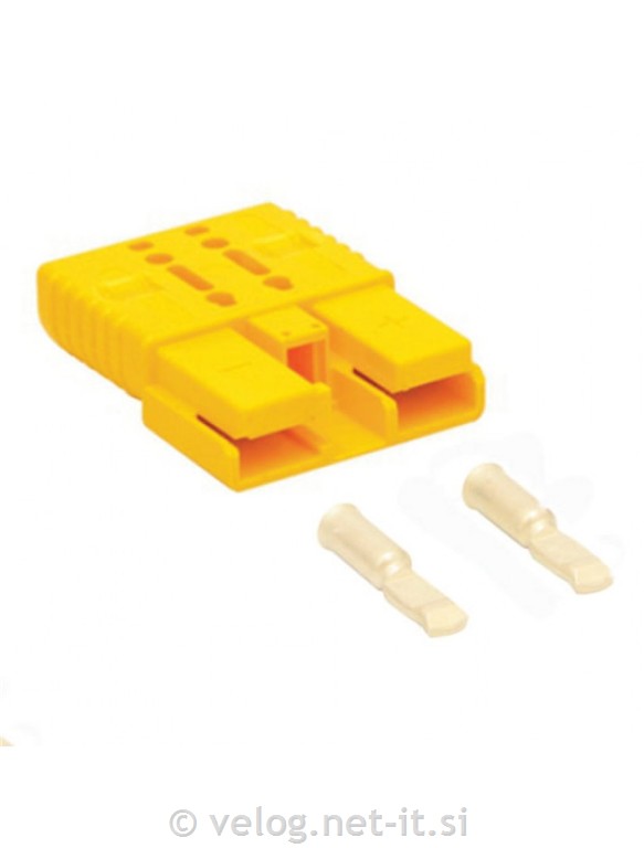 Konektor Anderson SBX 350 rumen 67,4mm2 s ploščatimi kontakti zagotavlja hitro in enostavno povezavo med baterijo in vozilom oziroma polnilcem.