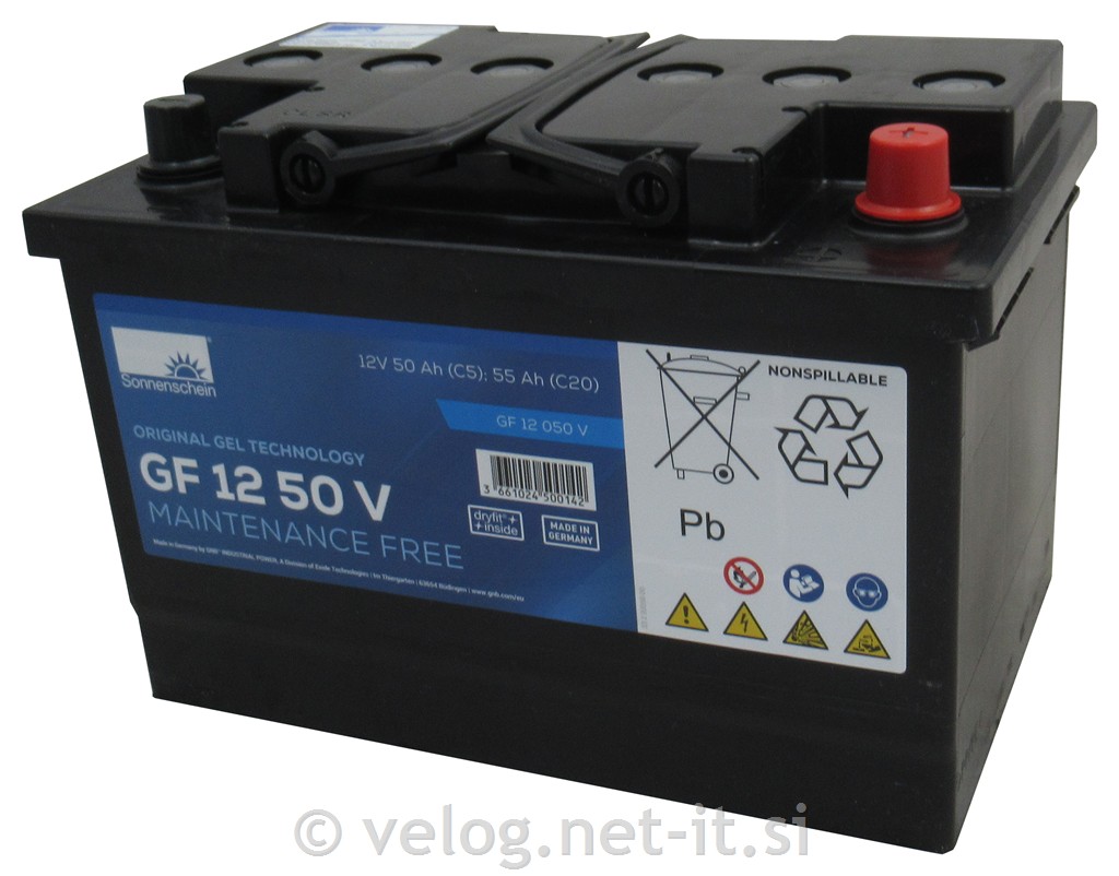 GEL akumulator SONNENSCHEIN tip GF 12 050 V, 12V 55Ah je namenjen ciklični uporabi in večkratnim globokim praznitvam.