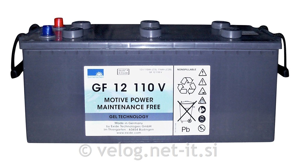 GEL akumulator SONNENSCHEIN tip GF 12 110 V, 12V 120Ah je namenjen ciklični uporabi in večkratnim globokim praznitvam.