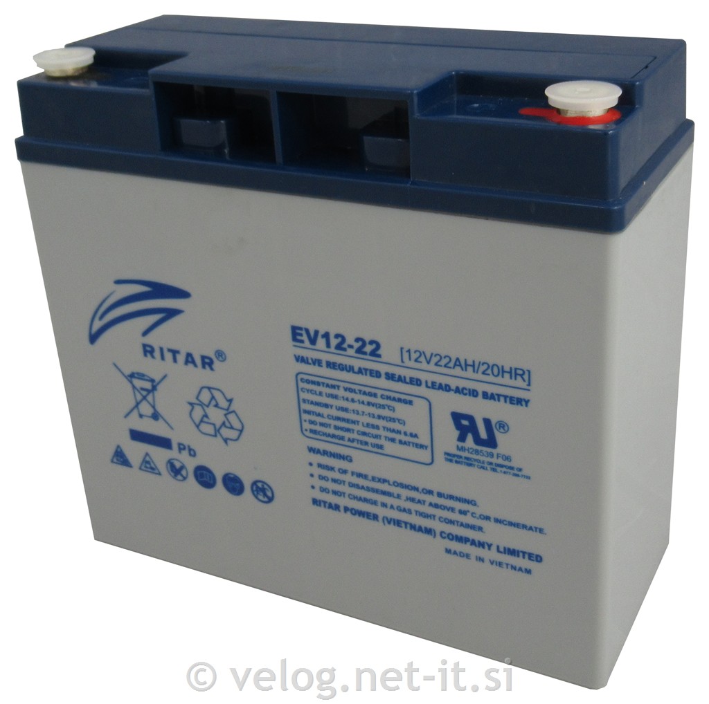 Akumulator Ritar EV12 22 je namenjen zlasti za uporabo v električnih skuterjih in povsod tam, kjer je potreben trpežen akumulator z dolgo življemjsko dobo.