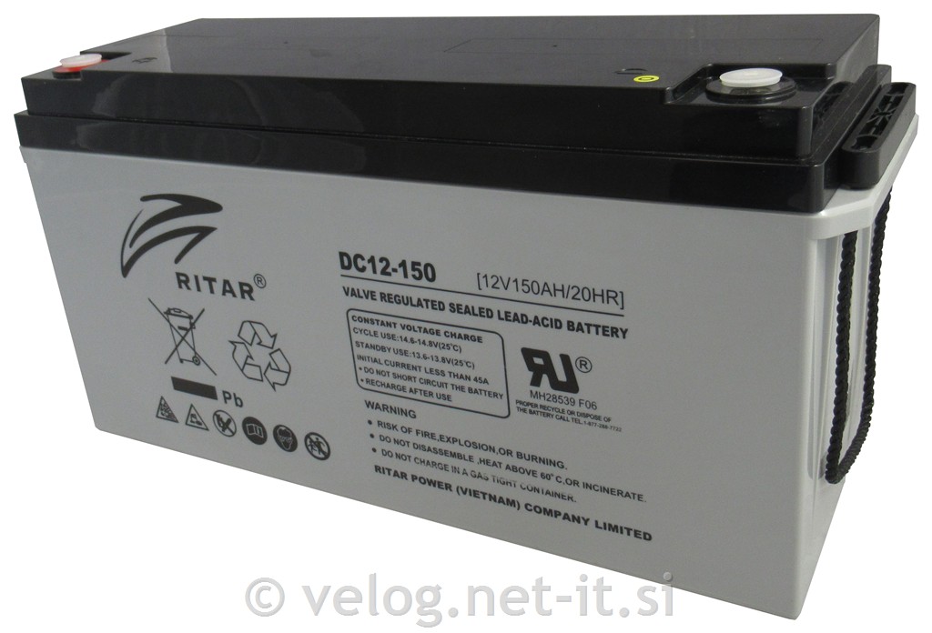 AGM akumulator 12V 150Ah - tehnični podatki (kliknite): Cikli%C4%8Dni_akumulator_Ritar_150Ah.pdf