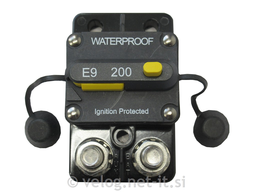 DC instalacijski odklopnik 200A je namenjen varovanju krogotokov, ki so povezani z akumulatorjem. Uporaben je tudi kot odklopnik akumulatorja v primeru potrebe ali vzdrževalnih del. Resetira se ročno.