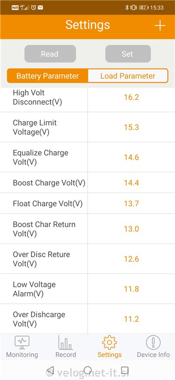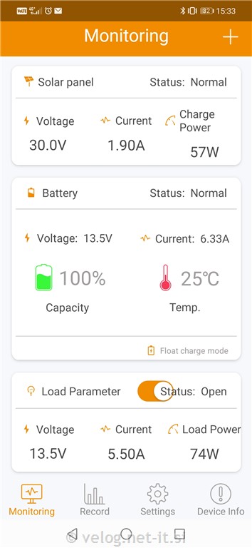 SRNE Solar Bluetooth vmesnik vam omogoča pregled nad vsemi parametri delovanja in nastavitev vašega MPPT regulatorja preko pametnega telefona ali tablice.