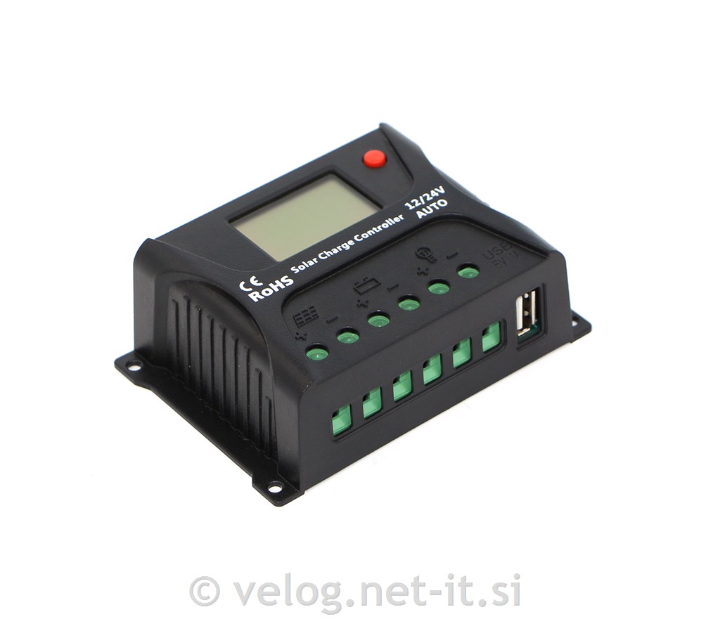 Solarni regulator PWM 12V/24V 10A z LCD monitorjem in USB