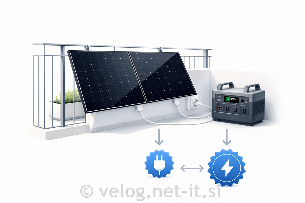 Balkonska sončna elektrarna s hranilnikom.