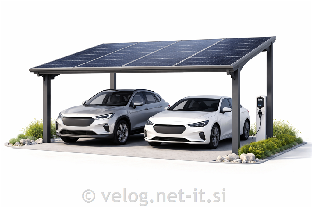Ključne besede; solarni nadstrešek za dva avtomobila, solarna polnilna poostava, damograditelji, naredi sam