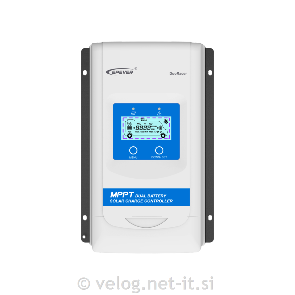 MPPT solarni regulator DUO 20A 12V/24V polni ločeno hkrati startno in delovno baterijo. MPPT solarni regulator, ki doseže tudi do 30% višji izkoristek, v primerjavi z standardnim PWM solarnim regulatorjem.