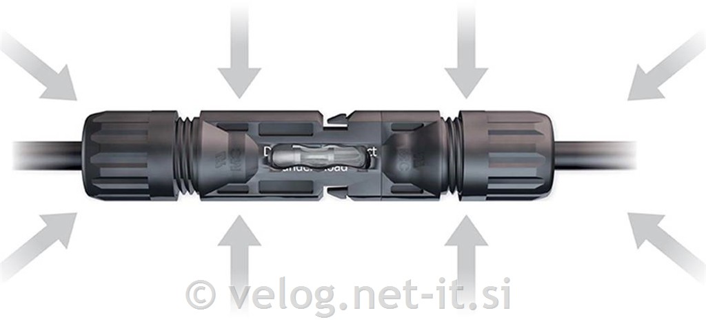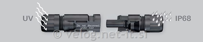 Solarni konektorji so vremensko odporni, ter odporni na ultravijolično sevanje. Solarni konektorji MC4 so vodotesni, saj imajo stopnjo zaščite IP67.