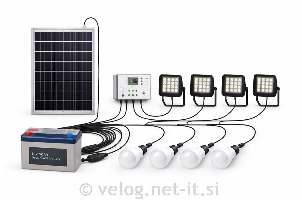 velog.net-it.si SONČNA ENERGIJA Sončne elektrarne in solarni kompleti Otočne sončne elektrarne - Off grid / brez priklopa na omrežje Solarni komplet za razsvetljavo
