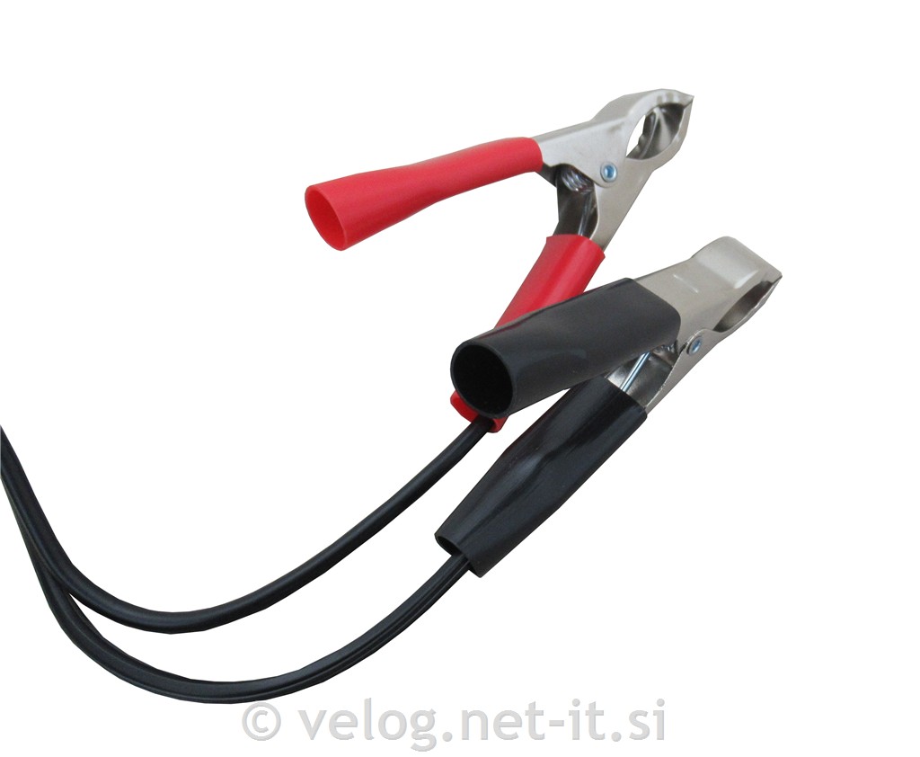 Polnilec je opremljen s kablom s krokodički in kablom, ki se konča s kabel čeveljčki